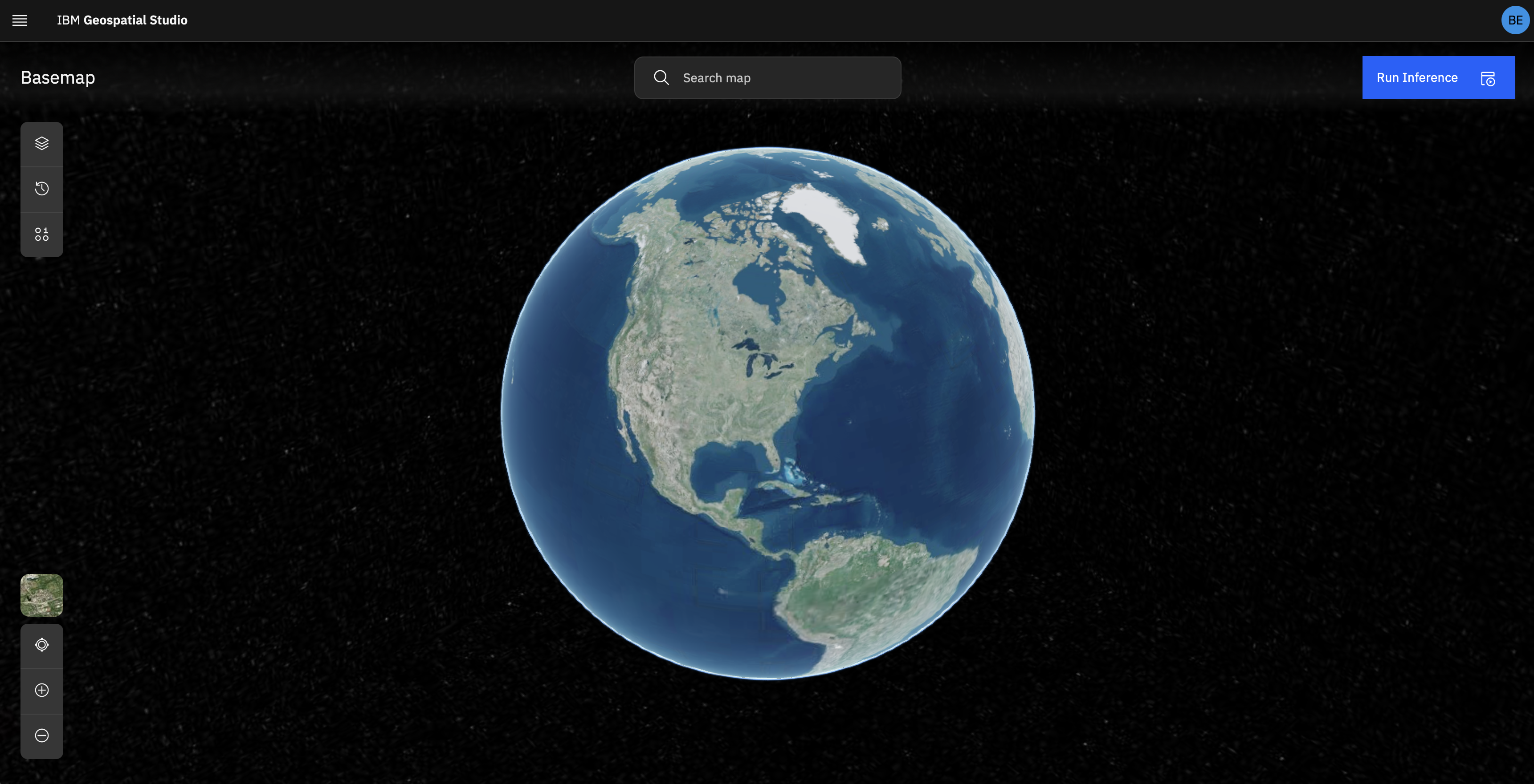 - You will be brought to the inference lab map view page. To run a new inference start by clicking on the