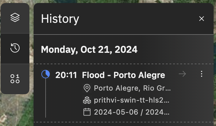 - Running an inference can take from about 30 seconds to a few minutes, depending on how large the area and time range for the input data are. But once the inference is complete, you should be able to view it in the map view by clicking on the entry in the history panel (or it should autoload if you have stayed on the page.)